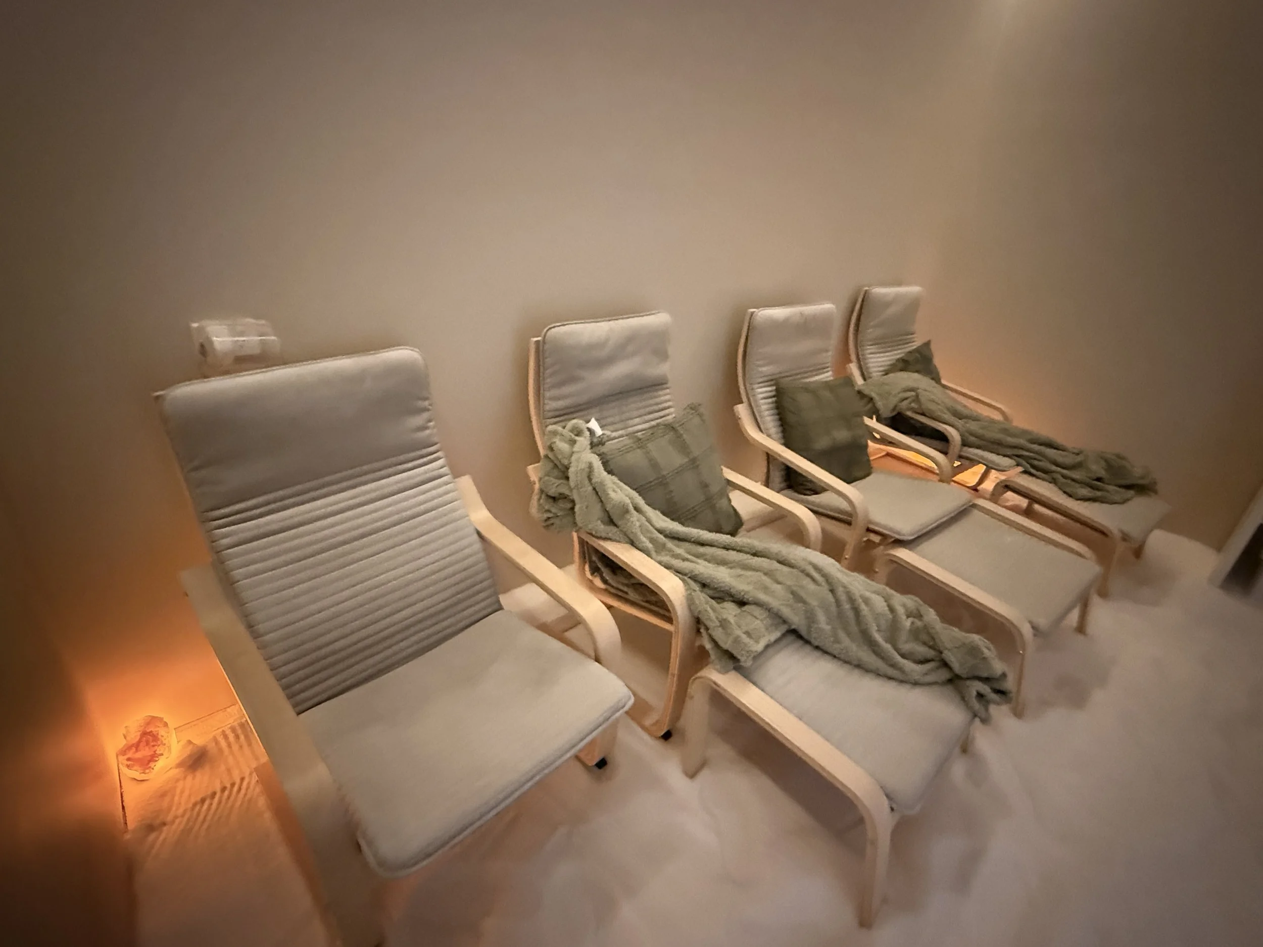 From the moment you walk in, you’re welcomed into a peaceful, supportive environment designed to help your body unwind and your mind rest. Whether you’re here for movement, salt therapy, or a treatment session, this is your place to breathe, slow down and feel completely at ease.